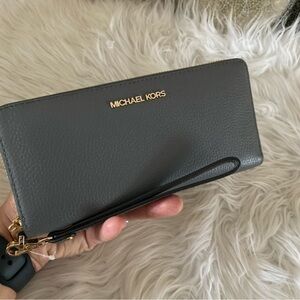 100% authentic brand new with tag Michael Kors Jet Set Travel Large travel Pebbled Leather continental wallet Wristlet
