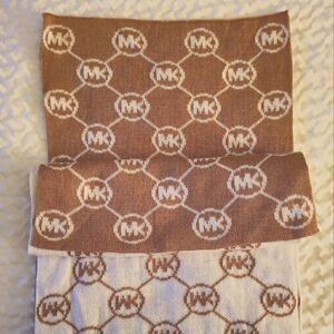 New Michael Kors MK Logo Print Cream/Tan Long Comfy Warm Scarf 60"x 10" Ret $89