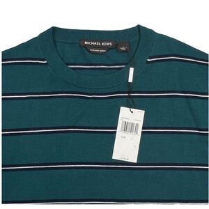 NWT Michael Kors Men Atlantic Green Sweatshirt Striped Crew Neck Classic Pullover US L MSRP $128