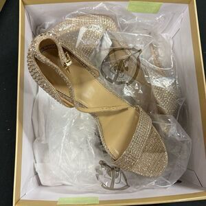 New Michael Kors Pale Gold Jordyn Platform Sandals 8