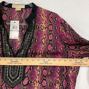 New Michael Michael Kors size 1X Purple Black Split Neck Reptile Print Boho Top