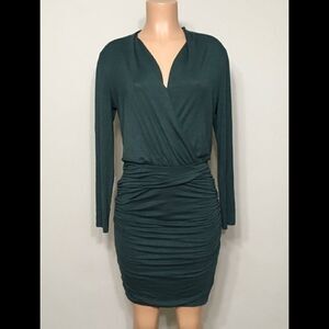 Michael Stars cross front long sleeve dress. Ruched on the skirt for a flattering fit. You can wear it short or pull it down for a longer look. Made with the softest high quality fabric. A beautiful dark green color. Rayon/spandex.