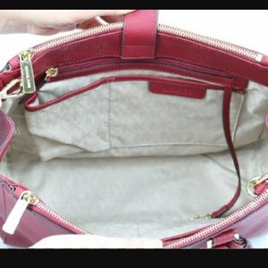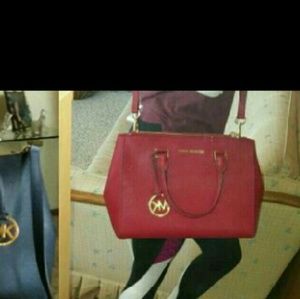 New Michael kors purse meduim sutton with tags is a cherry red. Very pretty bag, has handles and long strap. Has dust bag. Look on my page for more Michael kors items. Everything is authentic! !!!