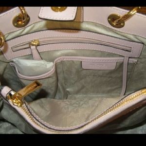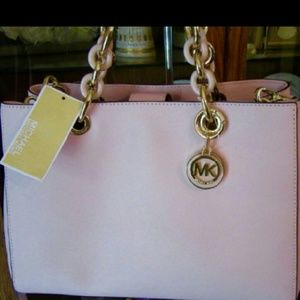 New Michael kors purse with tags. Is meduim Cynthia color is blossom has handles and straps that can come off. Very pretty have other Michael kors purses check out my page (:
