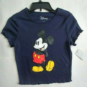 New Mickey Mouse Blue Short Sleeve Crop Top