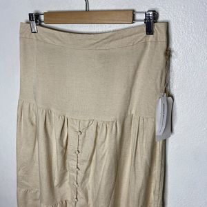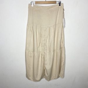 New Midnight Sky Beige Linen Blend Tiered Button Front MIDI Skirt Women’s Large