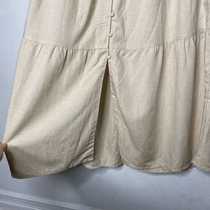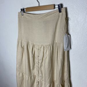 New Midnight Sky Beige Linen Blend Tiered Button Front MIDI Skirt