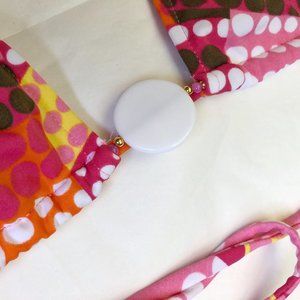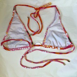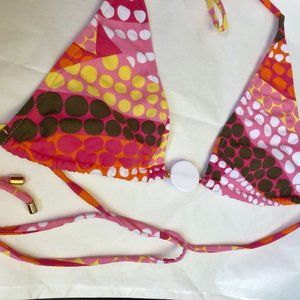 Bright and fun pink bikini top from Milly boutique swimwear. Mix and match a solid hot pink string bikini bottom with this multi-color candy top!