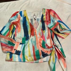 New! Milly Watercolor Brushstroke colorful Top In Multi 28136