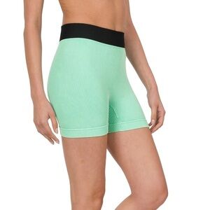 New Mineral Washed Ribbed Seamless High Rise Shorts in Mint