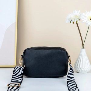 New without tags Mini Crossbody with zebra guitar strap vegan PU Leather.