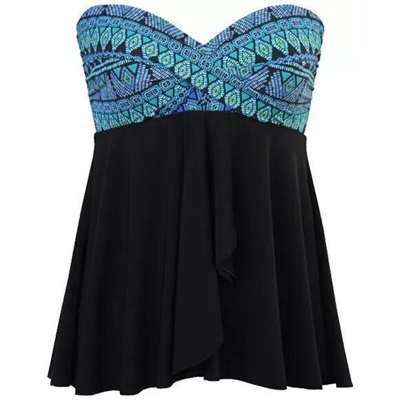 New. Miraclesuit bandeau tankini top. Size 14. Flaunt it if you've got it. Miraclesuit's ultra-flattering tankini drapes in the right places, while showcasing an exotic print and retro bandeau silhouette.