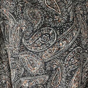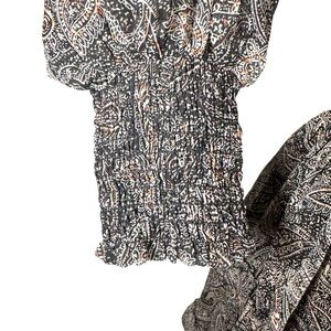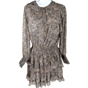 New Misa Los Angeles Paisley Dress Size M Shear sleeves Silver Threads