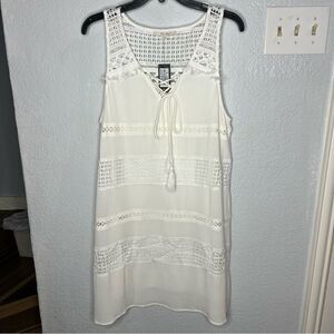 New! Miss Me Off White Eyelet Sleeveless Bojo Cowgirl Short Dress Sz Large