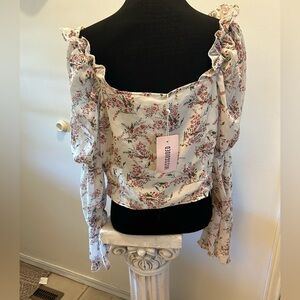 New Missguided tie neck crop top blouse frill floral 0114 ASOS w ♥️59