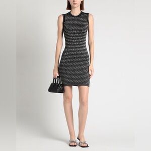 New Missoni Mini Knit Dress Logo Black Silver XS Short Sheath Stretchy Wool