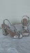 New! Miu Miu Crystal Adorned Metallic Silver Leather Block Heel Sandals Sz. 38.5
