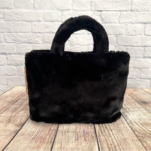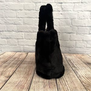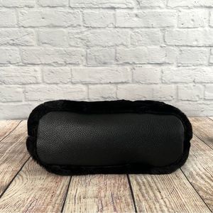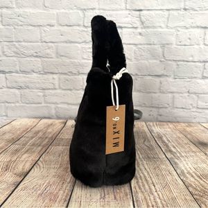 Brand new Mix No. 6 Caiti black faux fur Satchel with removable crossbody strap. This midi handbag features a 4" maximum drop, a removable shoulder strap with 24" maximum drop, and a top snap closure. The inside is fabric lined and has 1 zip and 1 slip interior pockets. Measures 13" L x 4.5" W x 8" H.