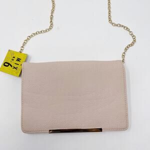 New Mix No 6 Light Pink Chainlink Crossbody Bag Clutch Snap Closure Gold Accents