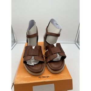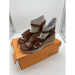 New Miz Mooz Mackenzie Leather Wedge Slingback Sandals Brown EU 39 US 8.5-9