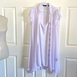 Never used excellent conditions,midi shirt dress,shirt ruffle sleeves,buttons up,there is a slip wi a dress