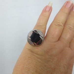 New Mod 60s Silver-tone & Black Glass Geometric Vintage Button Handmade Ring