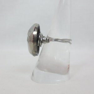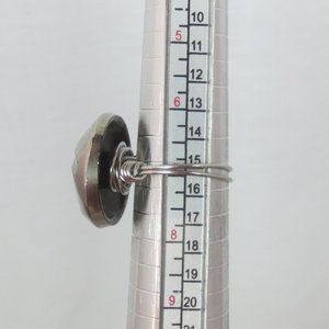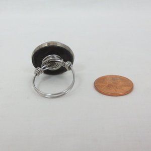 Hand Crafted Black Glass & Silver-tone Mod 60s Geometric Vintage Button Wire Wrapped Ring