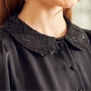 New ModCloth Sweet Nothings Puff Shoulder Button Down Blouse Black Size Medium