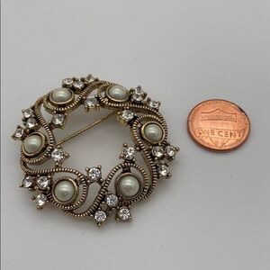 Stunning brooch in excellent condition with (faux?) pearls and rhinestones