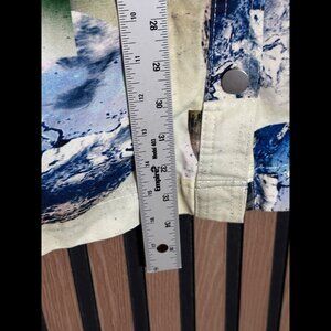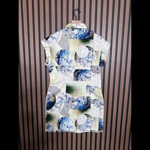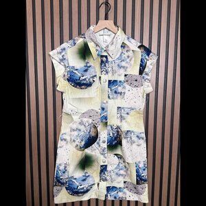 New Monkl Jacket Dress Small Womens Multicolor Abstract Denim Button Knee Length