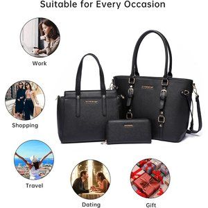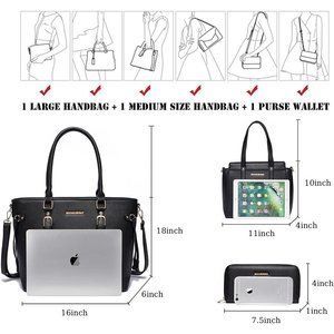 [Superb Material] This womens tote purse made of vegan leather. The stitching is well made as smoothly to touch. The linging of this tote bag purse was used the supreme cloth. There's no chemical left in this women's purse. 3pcs in 1 set, it is convenient for you.