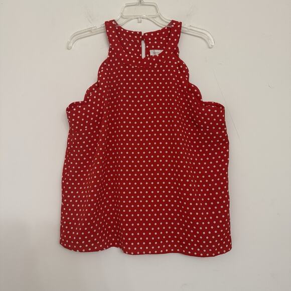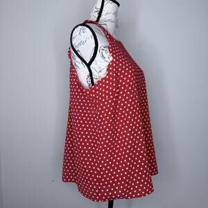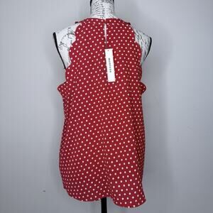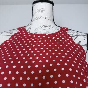 New Monteau Los Angeles Red Polka Dot Scalloped Halter Tank Sleeveless Blouse XL