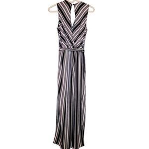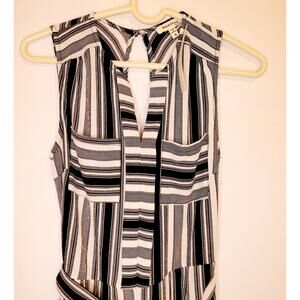 New Monteau black and white striped wide leg sleeveless belted jumpsuit Size S