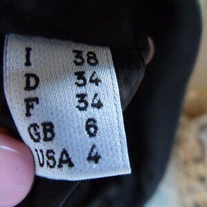 The dress has elegant cap sleeves and tailored pleats at both the front and back, creating a flattering, structured silhouette. A concealed back zipper ensures a seamless finish. Perfect for cocktail events, evening outings, or stylish office wear, this Size 4 dress combines classic charm with bold detailing for a truly unique look. Measurements are approximate: Bust 32", waist 27", hips 34", length 36" . Ne, never worn, sorry tags were removed. Comes from a smoke free home.