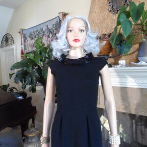 New Moschino CheapandChic Black Sheath Dress w. Beaded Stand Up Collar Size 4