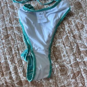 Never worn, new without tags, Motel Rocks green abstract bikini. High leg bottoms and adjustable backless top
