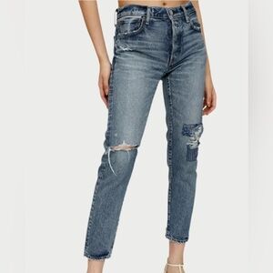 Moussy Monroe Tapered jeans with cool patchwork details. A new addition to your denim collection.