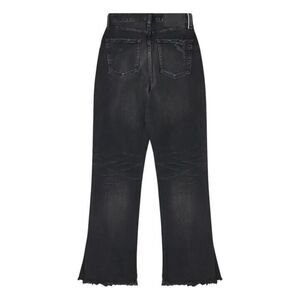 Fabric: Heavyweight stretch denimCoated waistband with waxy finish, Distressed holes, Split flare cuffs with frayed edges, Fading and wiskering, Leather logo patch at backRise: 11in / 28cm, Inseam: 27.5in / 70cm, Leg opening: 15.75in / 40cm5-pocket stylingAnkle length