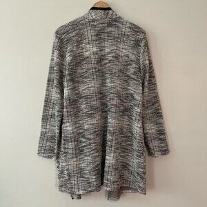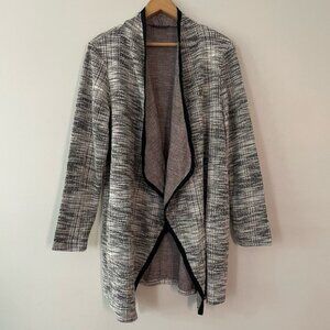 New Mr Max Black White Boucle Knit Open Duster Cardigan Blazer Size Large bin 3K