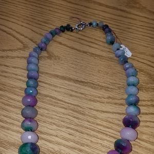 So fantastic is this piece.. 22 mm beads to 4 mm graduated sizes strung on poly silk cord and hand knotted between each bead... great pink and green all faceted jade beads