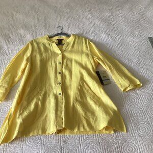 New Multiples Sz XL Bright Yellow 100% Linen A-Line Lagenlook Relaxed Chic