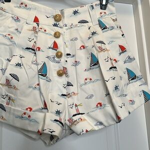 My Beachy Side x EMILY IN PARIS Nautical Beach Print High Waisted Shorts. Size Small