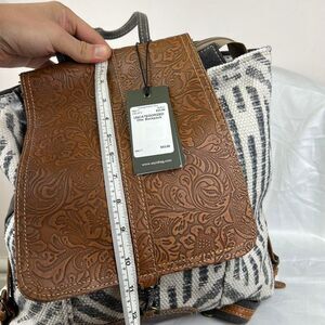 New Myra Backpack Boho Leather Chic Women Brown and white western-inspired with leather details and zipper closure