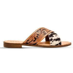 New! Myra Bag Western Hand-Tooled Leather Cowhide Hair-On Sandals