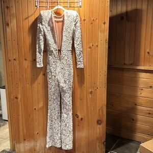 NWT Nadine Merabi Bella white lace jumpsuit. MISSING BELT but otherwise in new condition. Currently sold out in this size and retailing for $461 on the brand website.