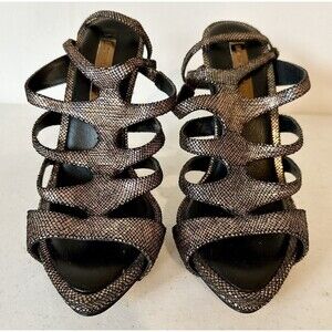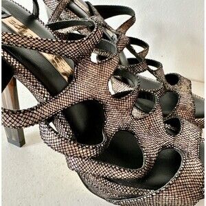 New NBW BCBG MAXAZRIA Metallic Pumps Leather Snake Print Stiletto Heels Platform Sz 7.5