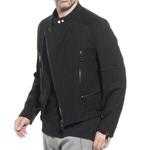 New NEIL BARRETT Wool Black Jersey Moto Jacket XL Men's