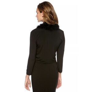 New! NEW DIRECTIONS Feather Trim Open-Front Cardigan Shrug Topper Black S