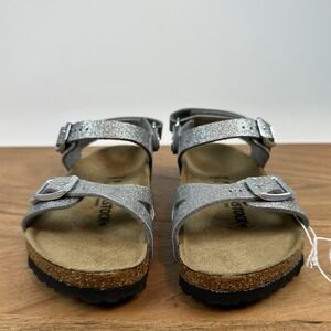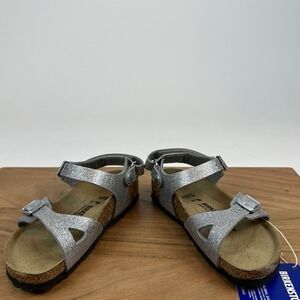 New NIB Little Kids Birkenstock Rio AS Sparking Silver Sandals Size EU 27 US 9