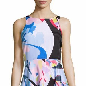 Punctuated by a high low hem, cutout back and a midi silhouette that perfectly complements your favorite pumps, this vividly-hued Nicole Miller New York dress makes a trend-savvy statement.